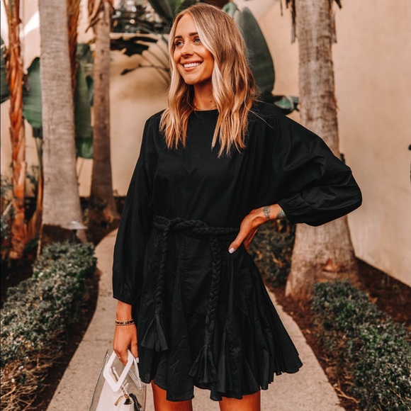 Made out of lightweight cotton with balloon sleeves and a braided belt this will. Rhode Womens Ella Dress Black. RHODE Ella Dress in black size small.